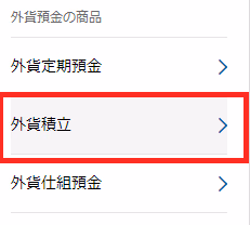 最初は外貨積立のメニューを見つかりにくいので、ナビします。