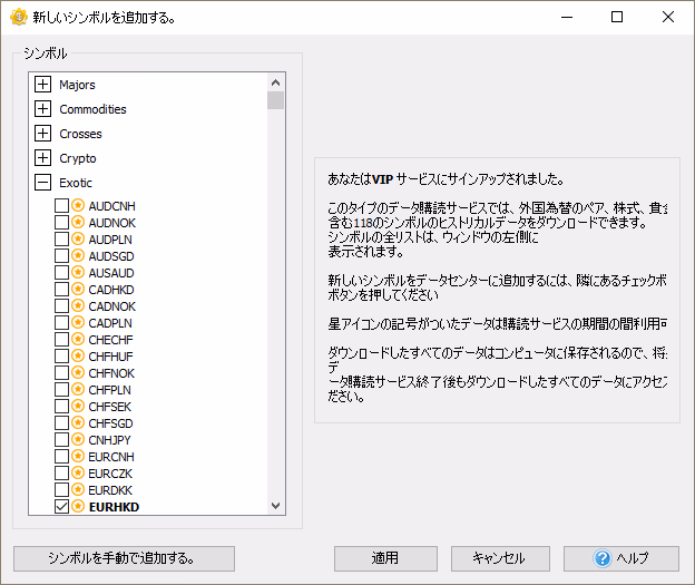 VIPデータ購読では、800以上のシンボル