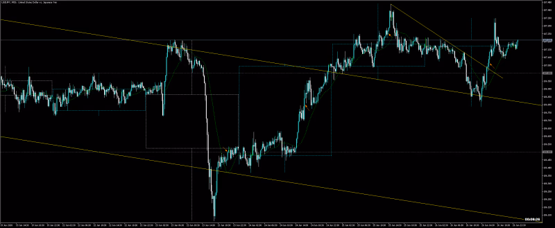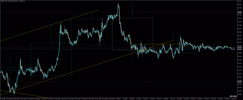 シナリオ:今日雇用統計の日。現在押し目買いの所。下がったら押し目買い。そのまま上がったら値幅が無くて買いにくいです。売るならWトップになったら考える。