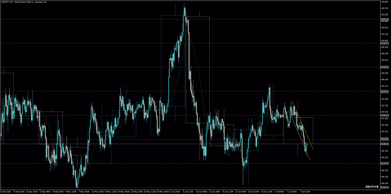 シナリオ:NY時間4Hトレンドラインの近くに下がって反発で上がっている所。買い選好だけど戻り売りを受ける可能性も高い。戻り売り受けてから買いたい。
