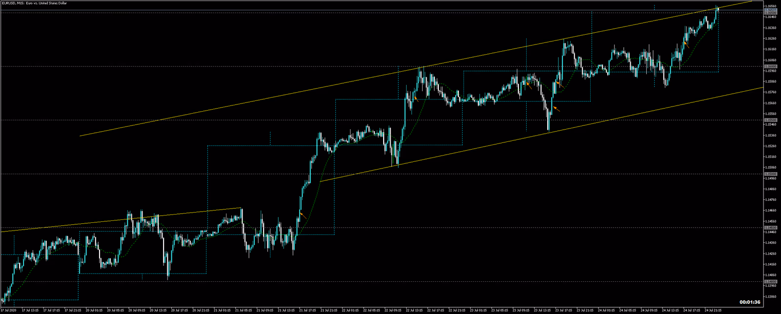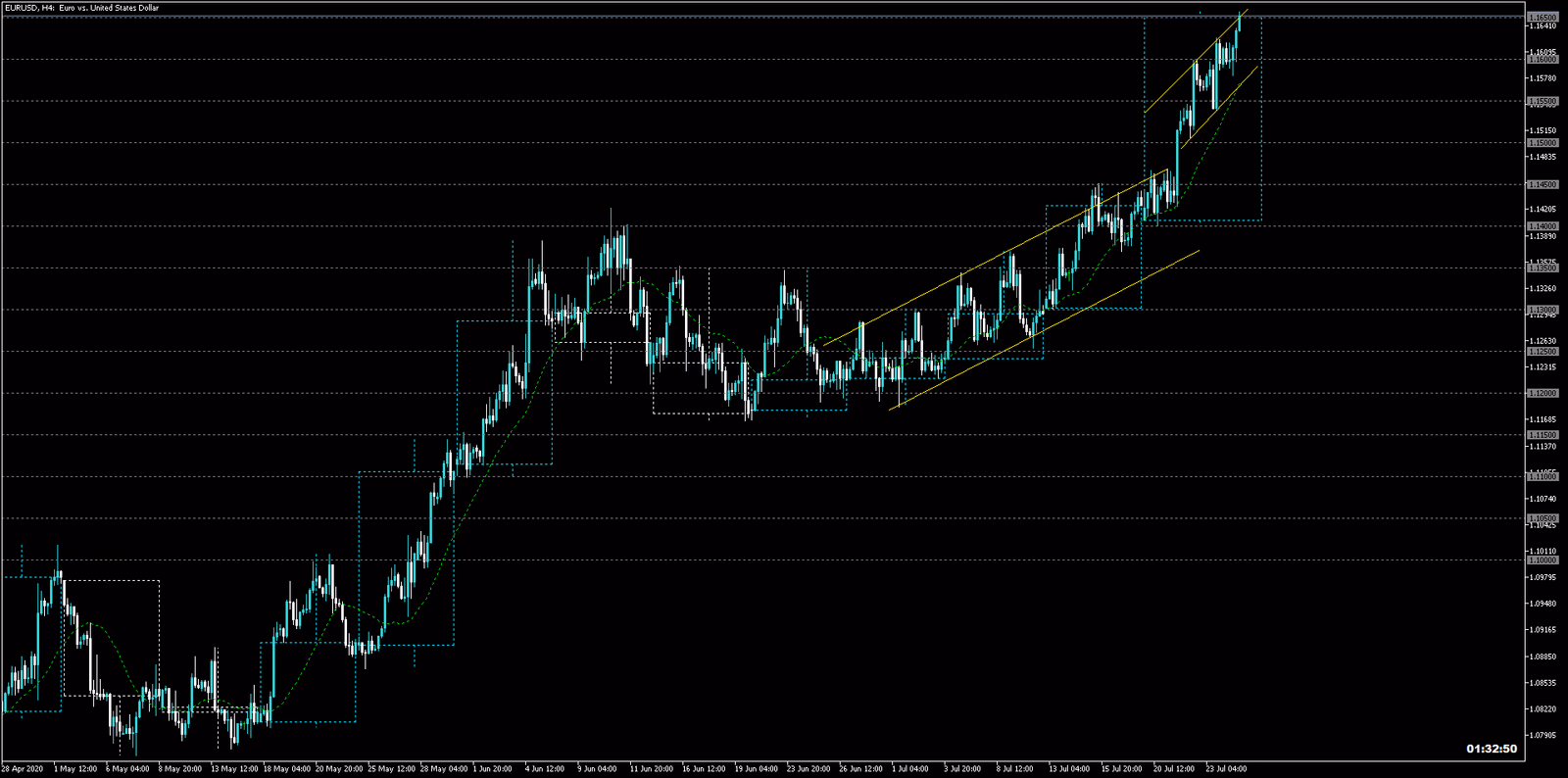 特に今週のユーロドル、日足トレンド中で、さらなる角度のトレンドも発生しました。その時最後まで押し目買いしたらいいでしょう。