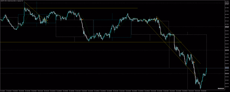 結果:NY時間で、切り下げラインブレイクで買い、失敗しました。騙しの安値確認してもう一回買い。上昇のモメンタムが弱いので利食いしました。