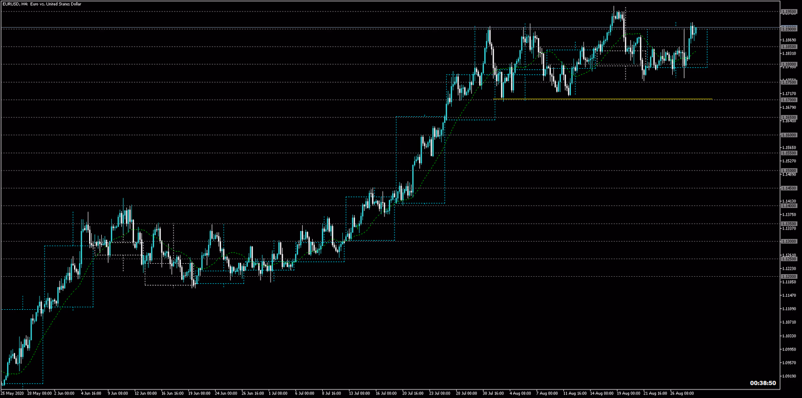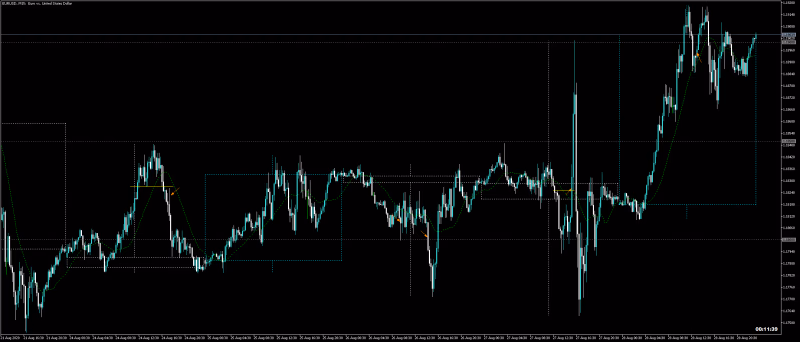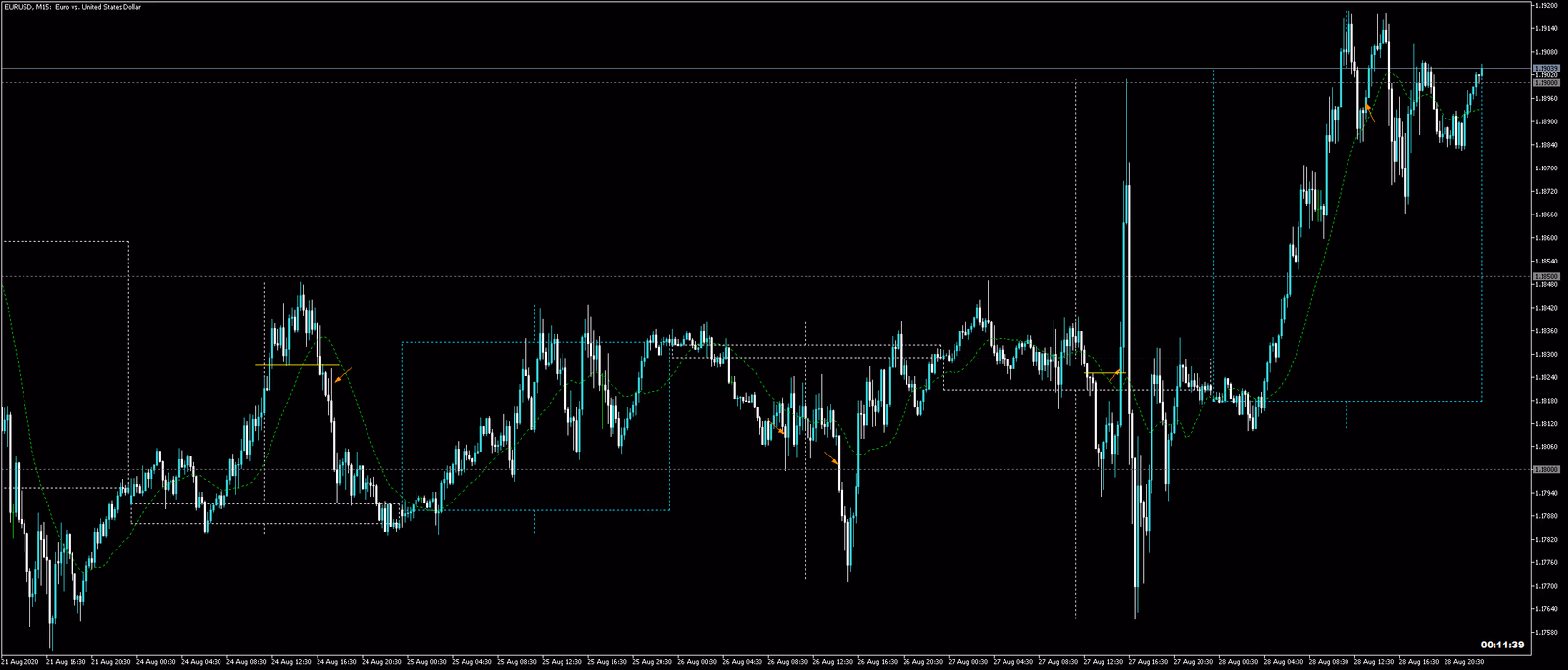 今週ユーロドルで、元々1.185で溜まった売りポジションの損切りを狙ったシナリオので、セットアップとして直近の揉み合い抜いたら条件整えて買う。