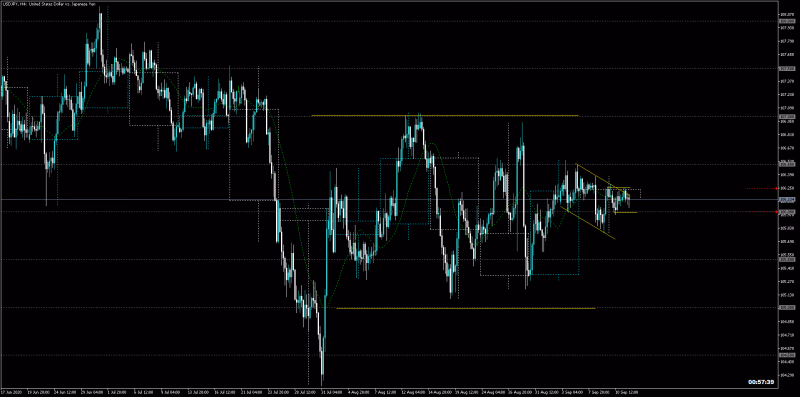 先週高値から一旦売られましだが、106円のサポートから抵抗でレンジ化しています。