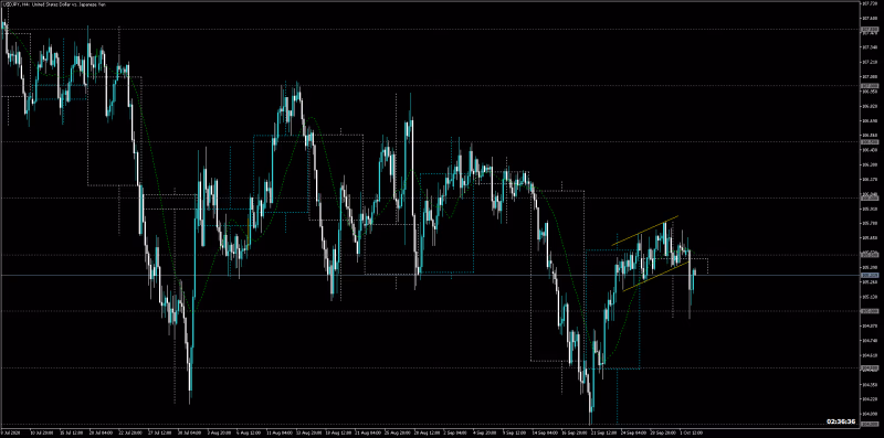 ①先日騙しの高値確定。三尊天井に見える。1Hの移動平均が効き始める。雇用統計もある、1H移動平均根拠に三尊天井から売り。