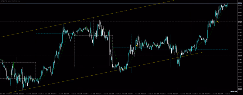 ・欧州時間、高値から売られなくて直接高値更新しました。ブレイク後小さい押し目で買いました。週足の所で利食い。