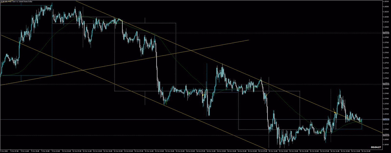 下降トレンドになり、1.17押し目買いのところで現在止まっています。