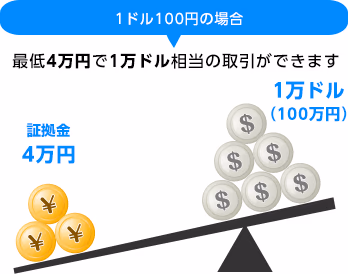 FXでは、証拠金として預けた資金の何倍もの金額の外国為替取引が可能です。