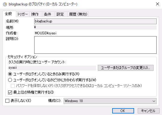 Winタスクスケジュール設定